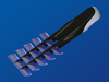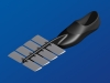 Contrairement au prototype, la série d'ailes est placée au dessus du pied. Le but étant d'offrir un maximum de poussée