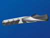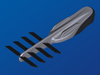 Elle possède 5 ailes de 50mm de corde, contre 3 de 76mm pour le prototype, ce qui la fait plus longue de 3cm. Ces ailes plus courtes permettent un